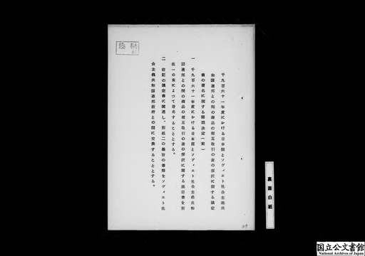 1961年度における日本国とソヴィエト社会主義共和国連邦との間の商品の相互取引の表の採択に関する議定書の署名について(外務省)