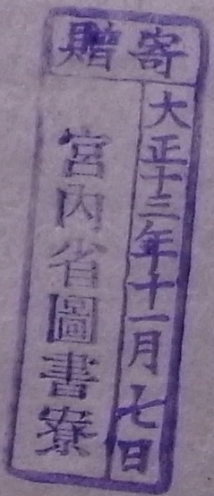 寄贈/大正十三年十一月七日 宮内省図書寮