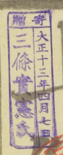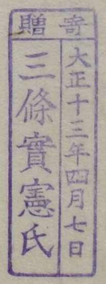 寄贈/大正十三年四月七日 三条実憲氏