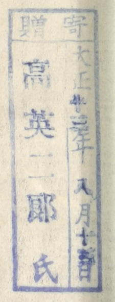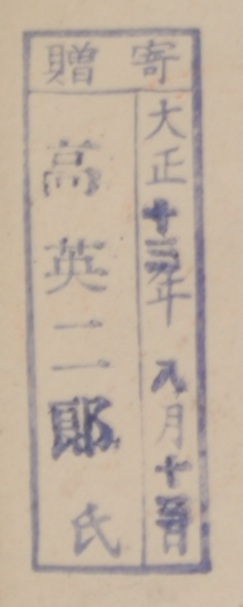寄贈/大正 年 月 日 高英二郎氏