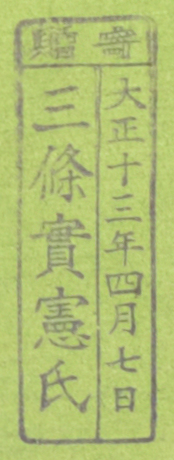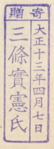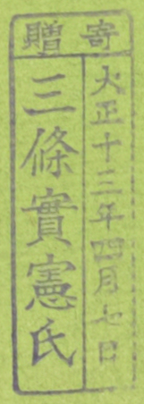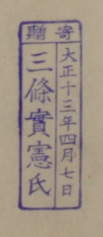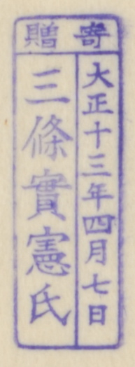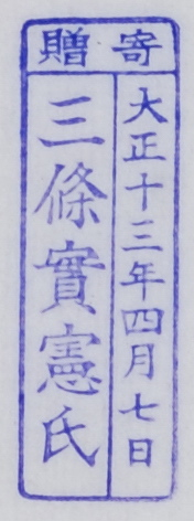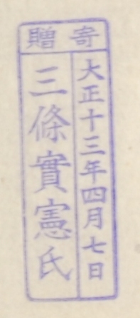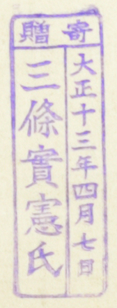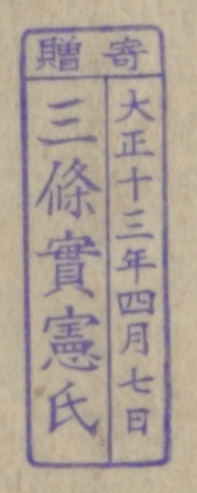 寄贈/大正十三年四月七日 三条実憲氏