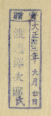 寄贈/大正 年 月 日 渡辺沢次郎氏