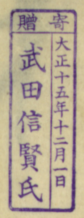寄贈/大正十五年十二月一日 武田信賢氏