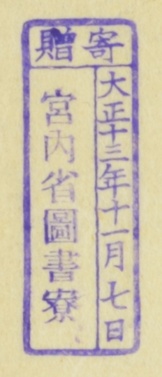 寄贈/大正十三年十一月七日 宮内省図書寮