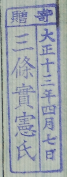 寄贈/大正十三年四月七日 三条実憲氏