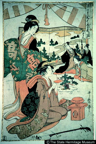 [La véranda du jardin de la maison de thé Matsumoto] : [estampe] / [Eishi a peint]