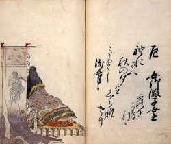 Ushiwaka Playing the Flute Outside the Home of Jōruri-hime with Poems