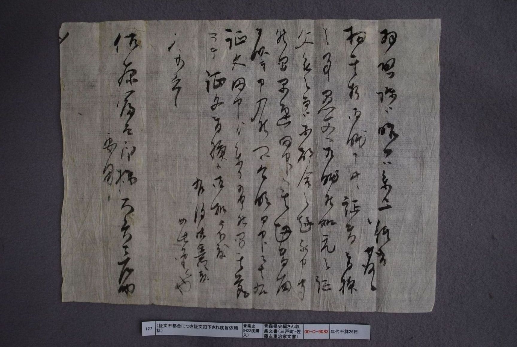 (証文不都合につき証文扣下され度旨依頼状)