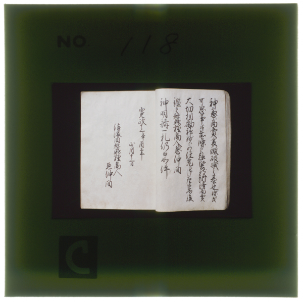 Kansei13nenshinanonokunisanshushouninnakamarenmeichousanshushouninkamishiojirimuraha119ningashoubaijounotokugitogojowomoushiawaseteirusatoukebunshouedashiritsuhakubutsukanzou