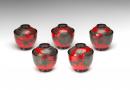 Set of five lacquered lidded bowls with watermelon design