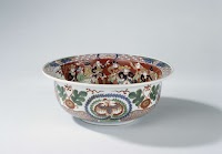 Kastkom van Japans porselein, met voorstelling van Hollandse schepen en kooplieden