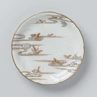 Saucer-dish with the 'three friends', birds and brushwood fences