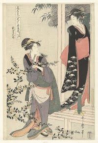 Twee vrouwen bij een bloeiende yamabuki struik: de tweede akte