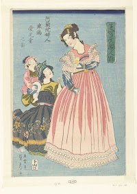 Een Japanse vrouw met een kind op de rug