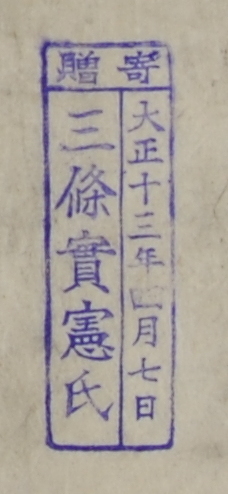 寄贈/大正十三年四月七日 三条実憲氏