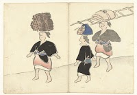 Drie vrouwen wassen kimono's