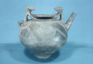 Spouted vessel with zoned cord-impressed decoration