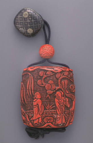 Medicine case (inro) with ojime and netsuke