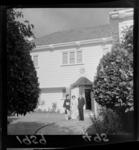 Exterior of official residence of the Japanese ambassador with unidentified man and women by the front door