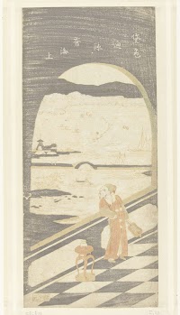 Chinese dichter uitkijkend over waterlandschap