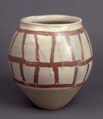 Jar, red lattice pattern over white slip