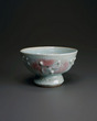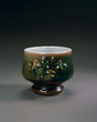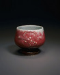 Tea Bowl with Slip Trailed Flower Design, Copper Red Glaze