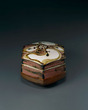 Hexagonal Food Container with Water Caltrop Design, Copper Red Glaze