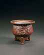 Incense Burner with Slip Trailed Water Caltrop Design, Copper Red Glaze