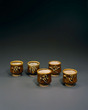 Tea Cups with Slip Trailed Flower Design, Iron Glaze