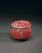 Food Container with Slip Trailed Flower Design, Copper Red Glaze