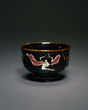 Tea Bowl with Slip Trailed Flower Design, Iron Glaze