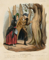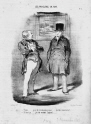 Caricaturana 33: Robert-Macaire the Journalist: I'm bringing you an article about the new law. I've slated it in a joking way, you see! -What are you thinking of, Mister Macaire, we shouldn't be attacking that law, we should defend it. - Ah,indeed, indeed, I'll rework it and make a frothy article in favour of the aforesaid law