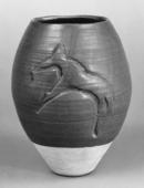 Jar, animal design, reddish brown glaze