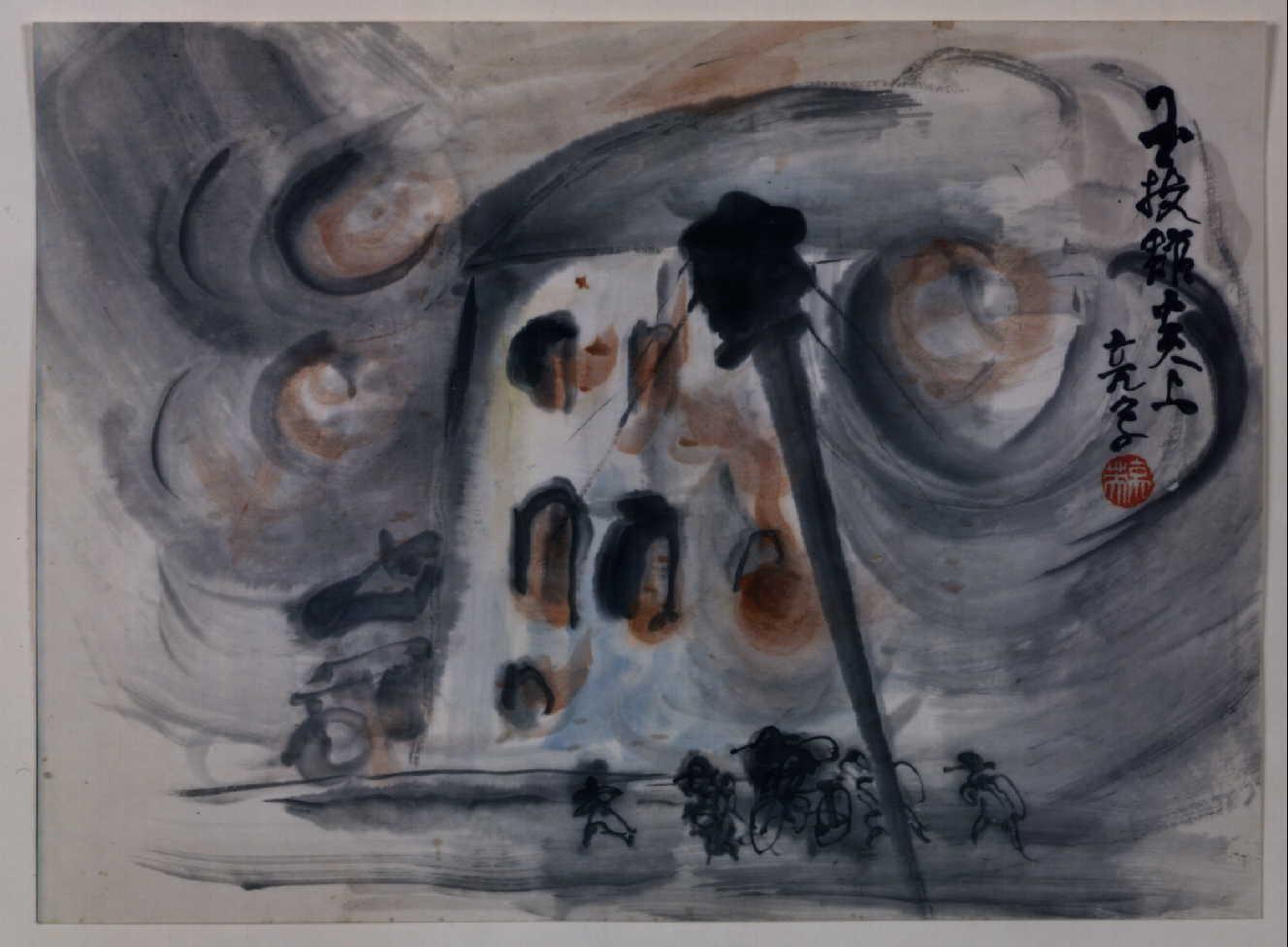 Great Kanto Earthquake Illustration: Kokugikan on Fire