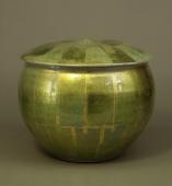 Lidded Ornamental Jar with Chrysanthemum Design in Gold Leaves, Overglaze Spring Green Enamel