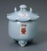 Incense burner, "Hakka"design, celadon with doucai decoration