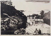 Eastern Gate to the Shitennoji Temple (Landscape in Rain) [from "Views of Osaka"]