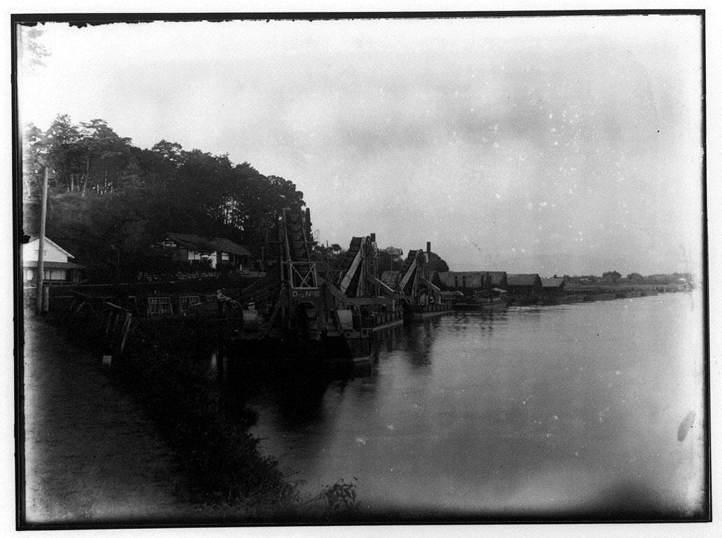 Working Vessels at Anchor in a River