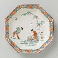 Octagonal plate with an image of Shiba Onko and floral scrolls