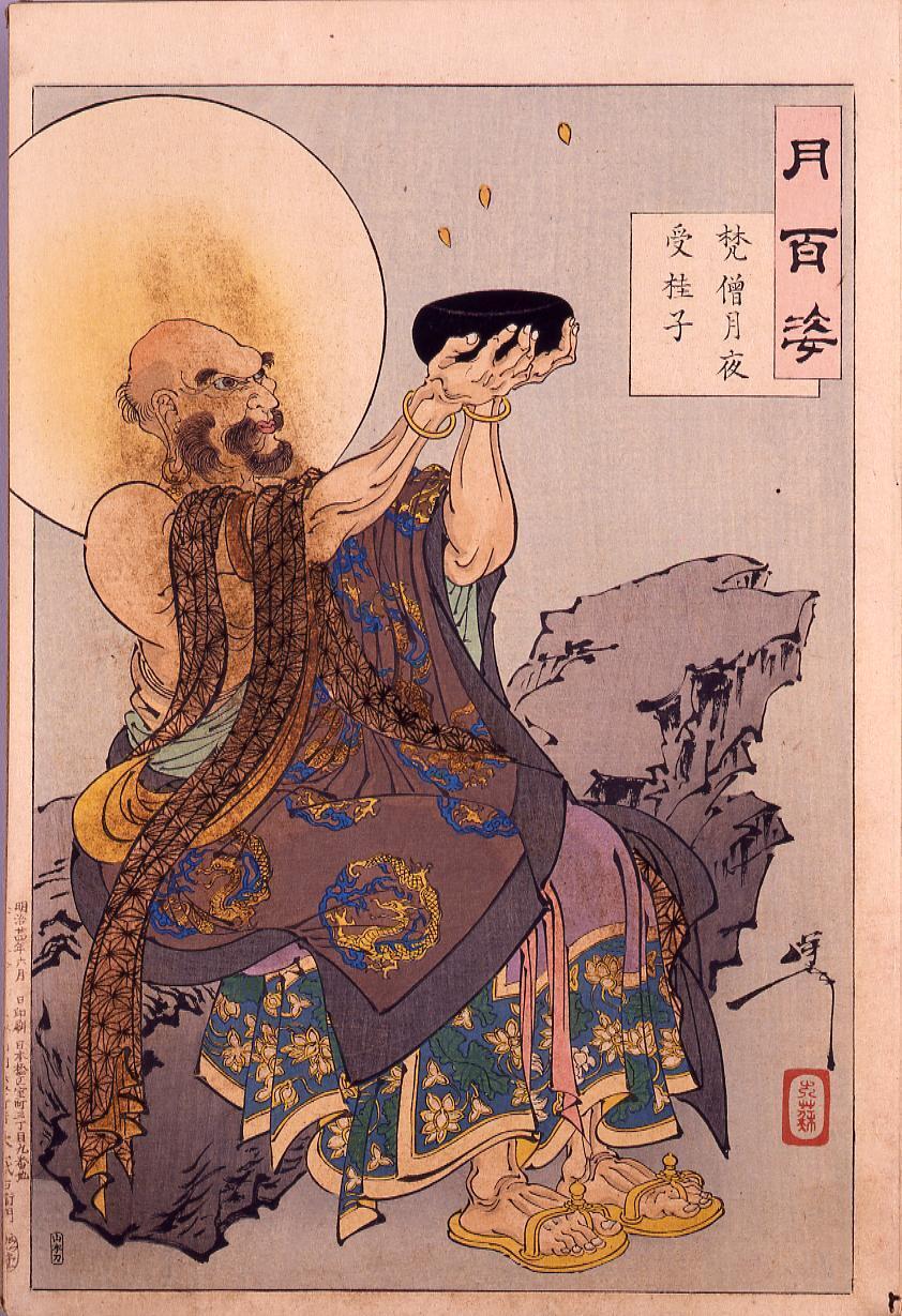 「月百姿 梵僧月夜受桂子」