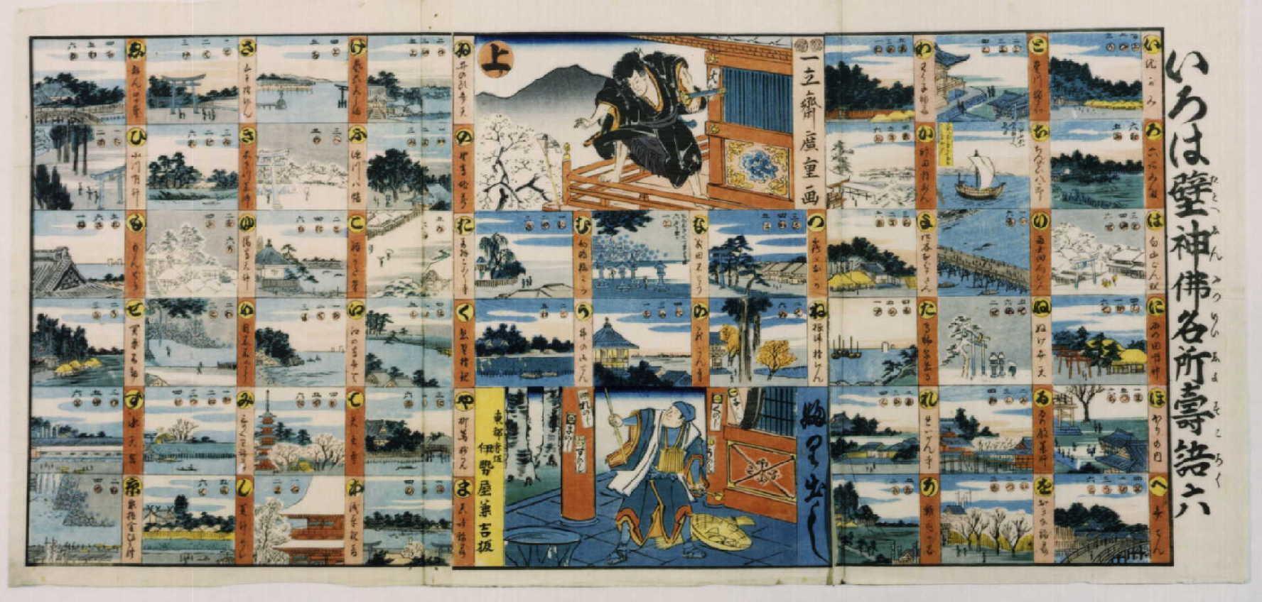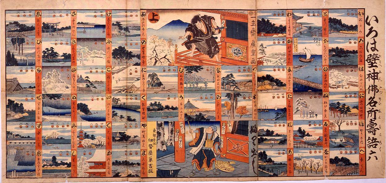 Iroha Alphabet of Proverbs Famous Shinto and Buddhist Sites Sugoroku Board