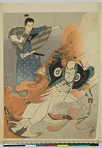 火炎に包まれる侍術かける侍
