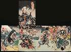 「いかるが藤太 嵐吉三郎」「しづか 中村松江」「忠信 中村歌右衛門」「光秀 松本幸四郎」「すけの局 中村歌六」「とももり 片岡仁左衛門」「おそめ 岩井半四郎」「久松 岩井半四郎」「らん平 中村歌右衛門」「山口九郎次郎 市川鰕十郎」「天竺徳兵へ 尾上菊五郎]「遠山 嵐小六」「重瞳丸 市川鰕十郎」「岩井松之助」「飛脚仲二 嵐吉三郎」「加藤 中村歌右衛門」