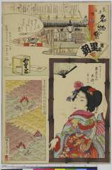 「東京自慢名物會 岸の家吾妻太夫 ビラ辰」「温泉即席御料理 万安楼」「よし町よろづ家小六 加藤こう」「見立模様鉄炮洲稲荷染」