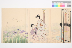 「千代田#大奥花菖蒲」 「千代田の大奥(月見の宴)(三枚続)」