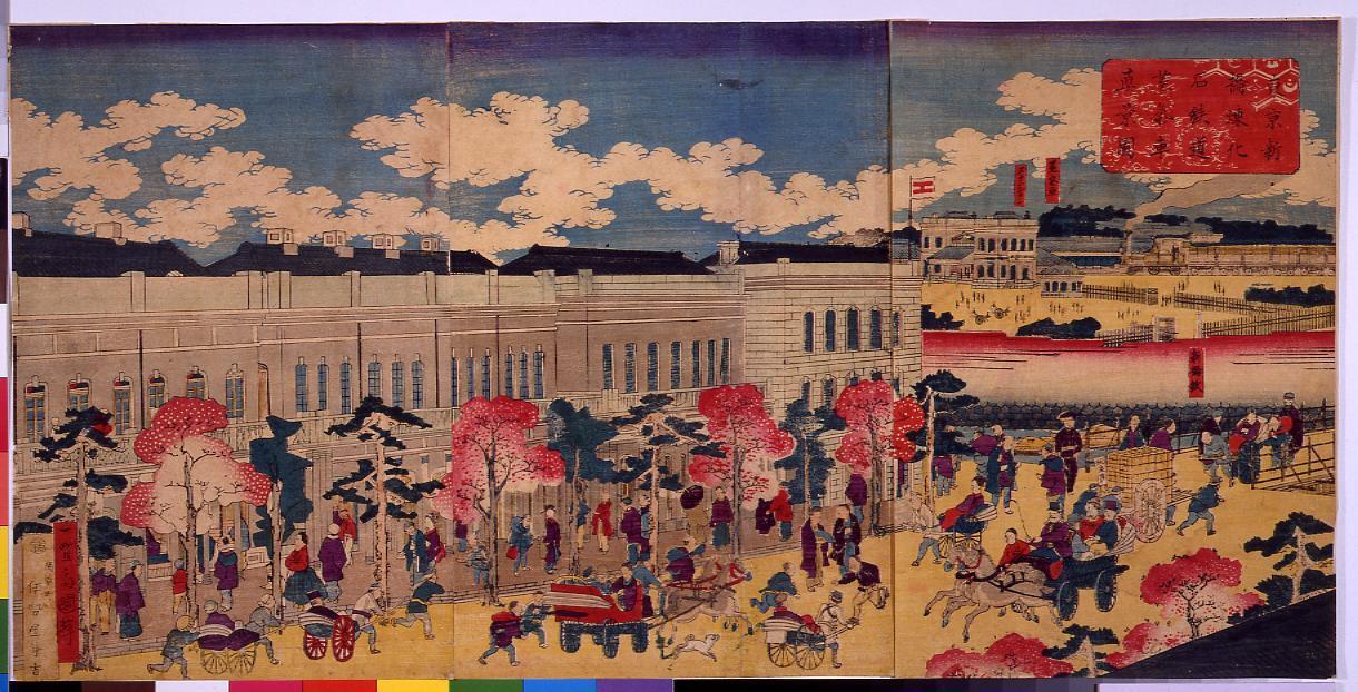「東京名#新橋ステンション蒸気車之図」 「東京名所新橋ステイション蒸気車之図」