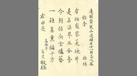 透關齋英山道雄居士一周忌之辰拙偈