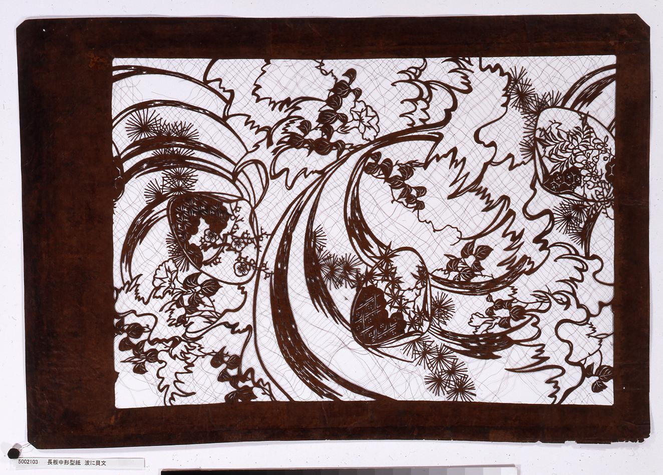 長板中形型紙 波に貝文