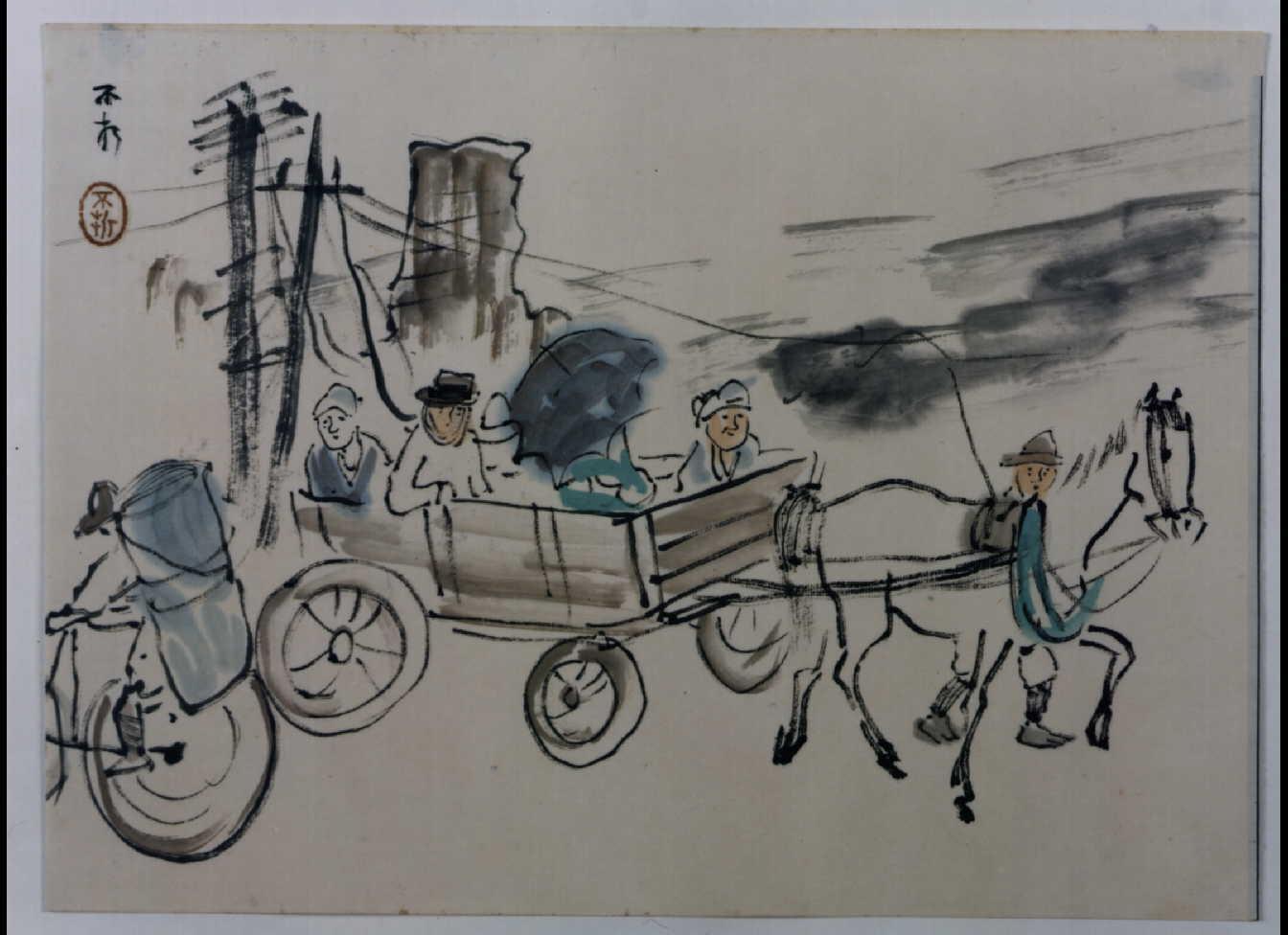 Great Kanto Earthquake Illustration: Rain on an Evacuation Train