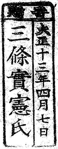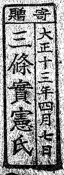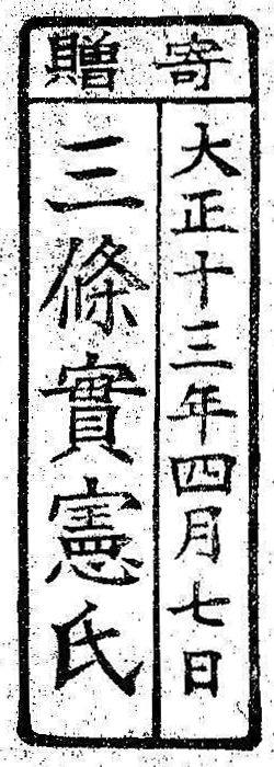 寄贈/大正十三年四月七日 三条実憲氏
